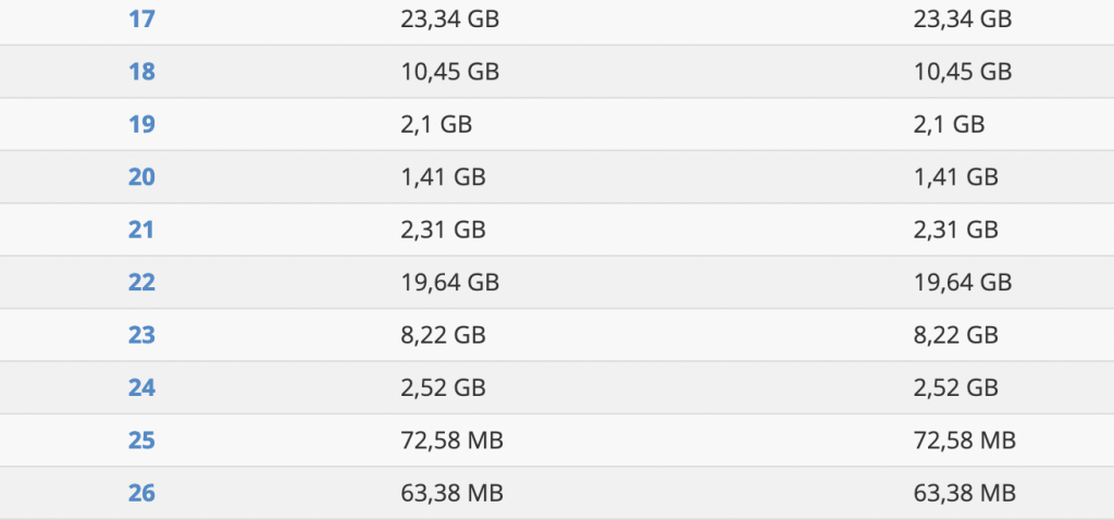 Itt látható, hogy 24-én avatkoztam közbe és 25-én egész napi forgalom már csak a töredéke volt a támadásos forgalomnak, ez egy kis forgalmú weboldal, napi 50-100 látogatóval és csak képek vannak az oldalon: iratrendezo.hu így a 60-70 Mb/nap forgalom teljesen reális, míg a több GB-os napi forgalom egyértelmű, hogy valamilyen irreális dolog történik.